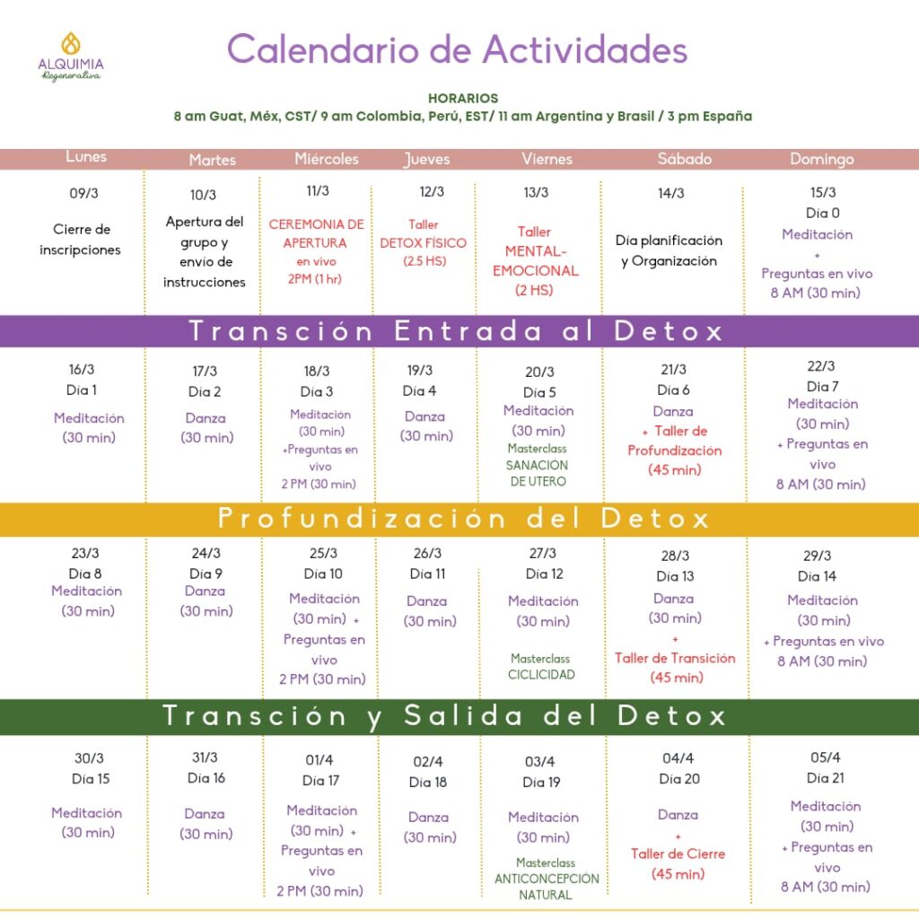 - 30 días de acompañamiento (1 semana más post detox)