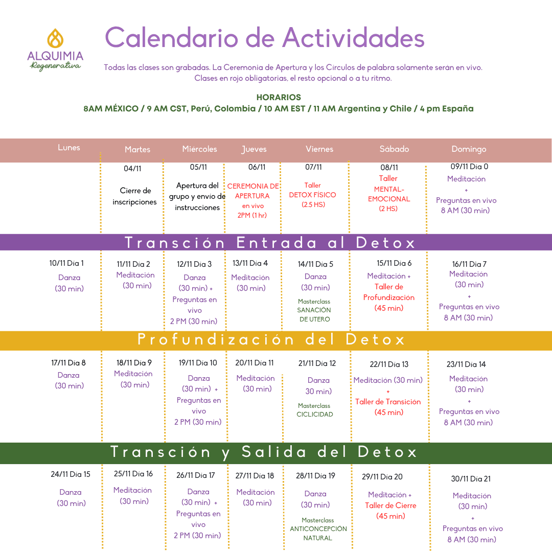 🗓️ FECHAS: Los talleres comienzan el Jueves 06/11. El detox inicia el lunes 10/11.
