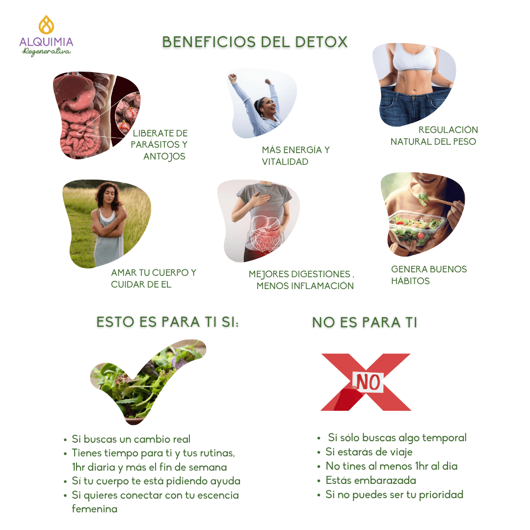 ¿Sientes pesadez, niebla mental, digestiones lentas, hinchazón y falta de energía? Ya no puedes más con los antojos y tu cuerpo dice basta? Es hora de darle a tu cuerpo el respiro que necesita. El Detox de 21 días de Desparasitación Física y Energética es la solución para eliminar parásitos con alimentos alcalinos, hierbas, de manera completamente natural y revitalizar tu salud desde adentro hacia afuera.
