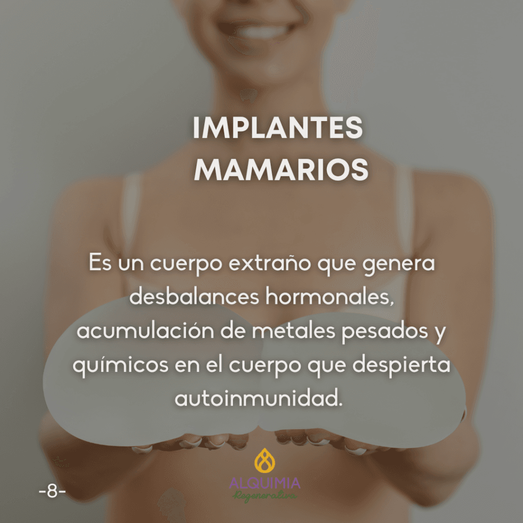 Cambia a productos de belleza y limpieza naturales sin químicos, evita implantes y cuerpos extraños dentro de tu cuerpo que generan desbalances hormonales y estancamientos.